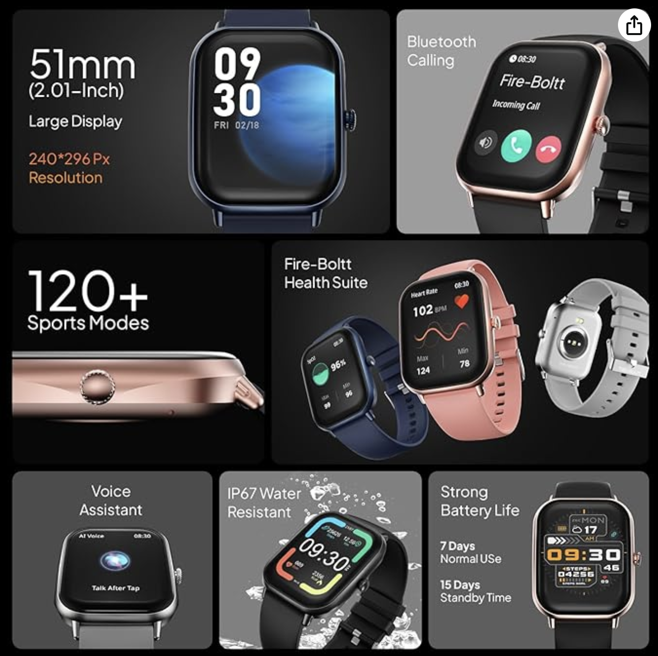 - Metal Body Design – Fire-Boltt Ninja Call Pro Max comes with a sleek and stunning metal body design. Unleash the power of longevity with impressive battery life. With up to 7 days of continuous usage and an astounding 15 days of standby time, this remarkable timepiece keeps up with your active lifestyle without missing a beat.