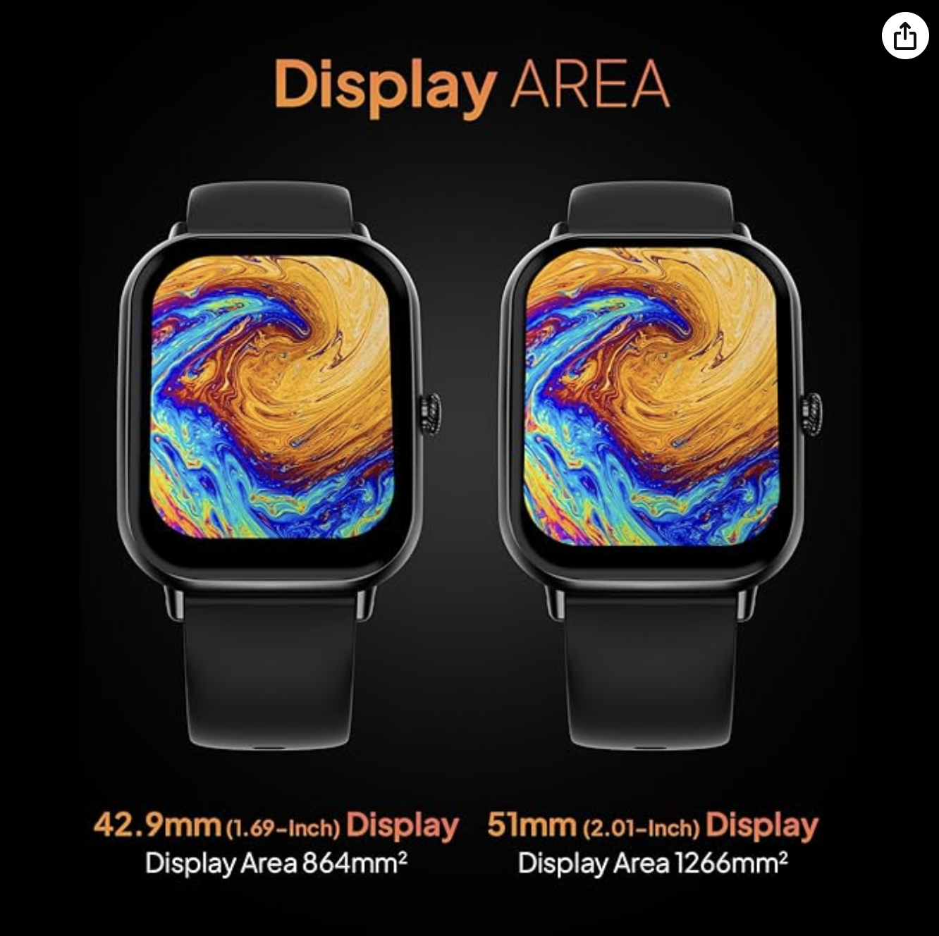 - 51.05mm (2.01 inch) Large display, 240*296 pixels resolution – Style meets technology in perfect harmony. Immerse yourself in the captivating world of the 51.05mm (2.01 inch) large display, and a brilliant resolution of 240*296 pixels. Every detail comes to life with exceptional clarity and vibrancy with 320 NITS Peak Brightness