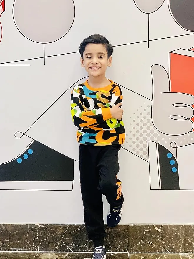 - Items Included : 1 Orange Letter Printed Sweatshirt, 1 Jogger Set | Boys Clothing Set