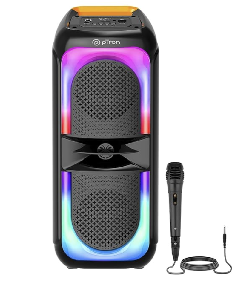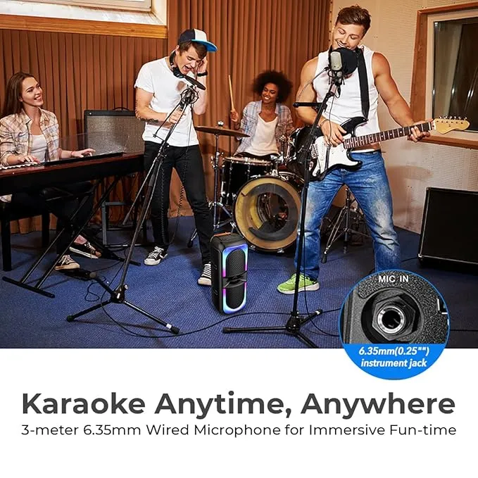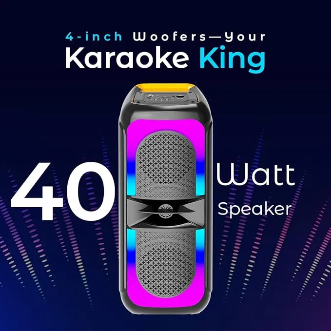 - 40W Immersive Stereo Sound, Full range 4″x2 Dynamic Speaker offers Powerful Sound to start a party anywhere, anytime | Wired Karaoke Microphone with 3 mtr long cord for a Perfect Karaoke Night