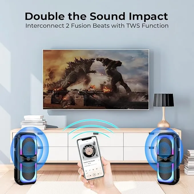 - TWS Feature to Connect 2 Fusion Beat Speakers as 1 to Double the Sound Impact | SNR ≥85dB | Power Voltage 1A DC 5V & Type-C USB Charging | Integrated Easy Controls to Manage Music Smoothly