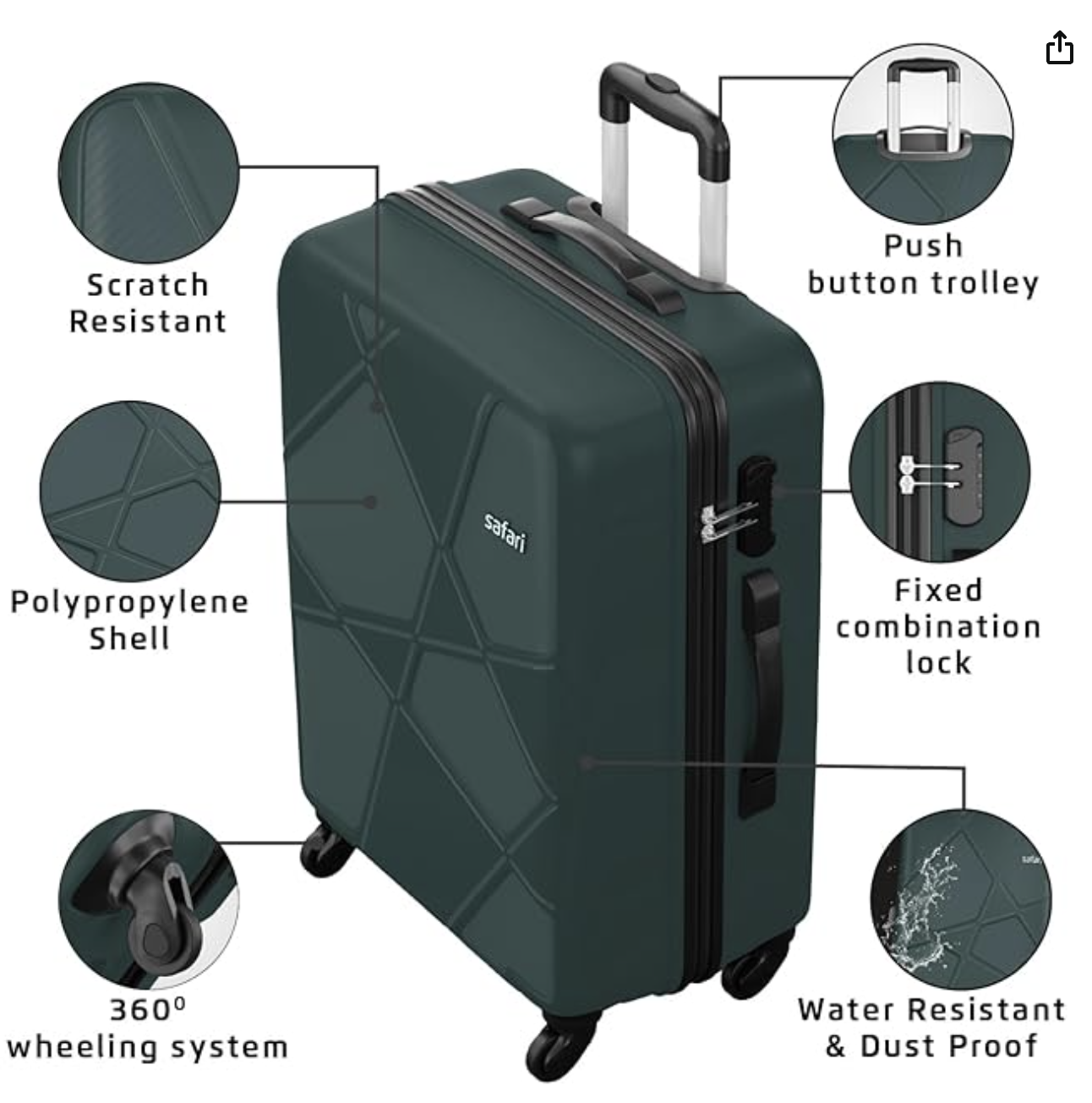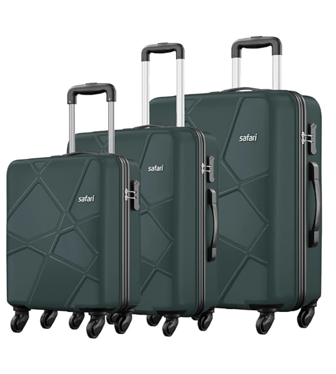 + Free ShippingSafari Pentagon Set of 3 (Cabin + Medium + Large) Trolley Bags Hard Case Polypropylene 4 Wheels 360 Degree Wheeling Luggage, Travel Bags, Suitcase for Travel, Trolley Bags for Travel, Dusk Green